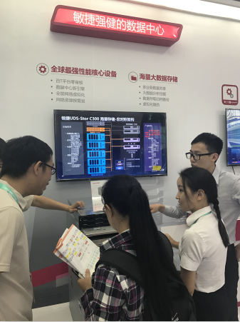 图:锐捷网络展台前吸引众多观众驻足交流