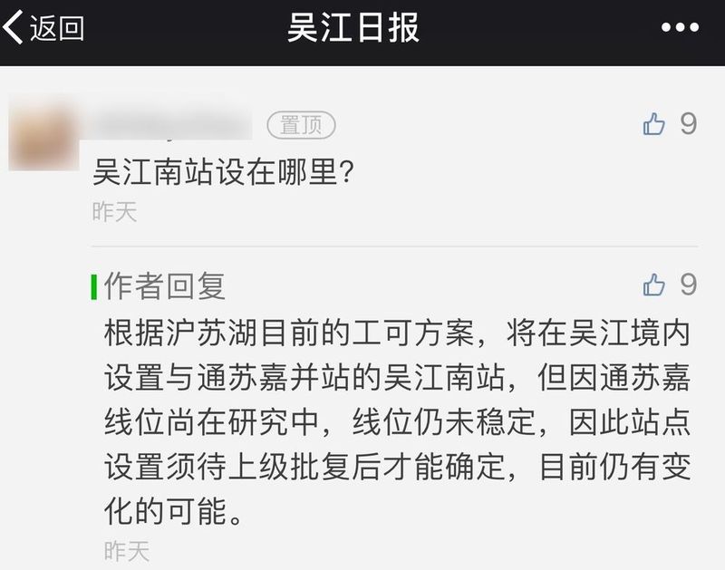 对于这一激动人心的消息 小伙伴们都兴奋不已 ↓↓↓ @我本爱国:我大汾湖有点牛批的嘛! @深谷:崛起吴江新时代 @网乐:到上海更近了! @可人:吴江的交通路口。到我们老百姓的门口了,我是吴江人,祝我们吴江高铁一快一好 @杨跃中:盛泽没有站点,高铁苏州南站在黎里汤家角,平望和黎里的交界位置,相对平望比较占优势一点。估计以后平望会因为这个发展好一点,盛泽过去远了一点。同时也有人提出吴江南站的有关问题 吴江日报做出官方回应 根据沪苏湖目前的工可方案,将在吴江境内设置与通苏嘉并站的吴江南站,但因通苏嘉线位尚在研究中,线位仍未稳定,因此站点设置须待上级批复后才能确定,目前仍有变化的可能。