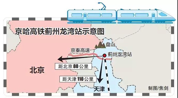 京哈高铁线上每天有100多对高铁穿蓟州但没有一对停靠,目前天津市北部山区无论坐普通火车还是开车到北京都需要约1小时。记者从天津市建设部门获悉,根据建设计划,京哈高铁蓟州龙湾站(蓟州南站)将于今年10月投运,建成开通后从龙湾火车站乘坐高铁到北京站只需半小时。