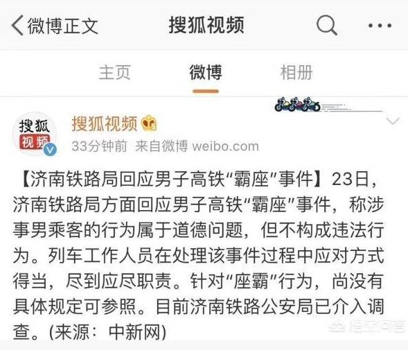 但最大的问题还不在于此。试想一下,如果此事没有经过舆论发酵,相关视频没有得到全网大范围传播,“霸座男”还会不会面临处罚?恕我直言,不了了之的可能性很大,毕竟就在昨天,济南铁路局还言之凿凿地声称该男子的行为“属于道德问题,但不构成违法行为”。