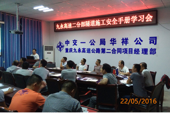 (记者 常魁星 通讯员 安腾飞)为加强项目隧道施工管理,保证隧道施工生产安全, 5月22日,重庆九永高速二分部组织学习了中国交建《隧道施工安全手册》。学习会由项目安全部部长熊涛主持,项目部全体人员和协作队伍负责人参加了学习。