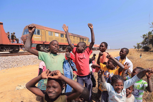 这是2014年7月9日,安哥拉孩子在本格拉铁路沿线玩耍的资料照片。该铁路是继坦赞铁路之后,中国在海外修建的最长铁路。该项目由中国铁建二十局集团建设,全长1344公里,西起大西洋港口城市洛比托,向东途经本格拉、万博、奎托、卢埃纳等重要城市,直抵与刚果(金)接壤的边境城市卢奥。新华社发(庞曙光 摄)
