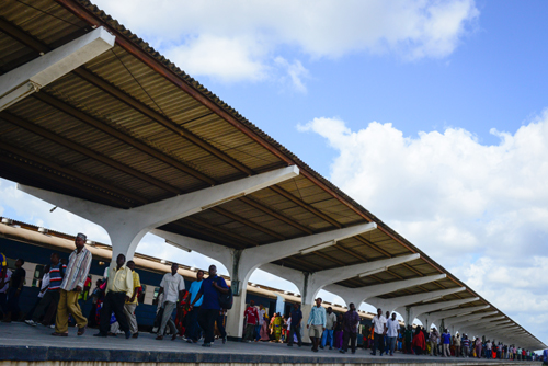 2016年5月31日,乘客走出位于坦桑尼亚的坦赞铁路达累斯萨拉姆车站。坦赞铁路东起东非坦桑尼亚港口城市达累斯萨拉姆西至南部非洲赞比亚中部的卡皮里姆波希,全长1860.5公里,由中国政府提供无息贷款援建。它是中国最大援外成套项目之一,中国曾先后派遣工程技术人员5万人次。新华社记者 翟健岚 摄