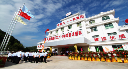 高湛齐致词说,“兴泉铁路兴宁段4标,在赣闵两省三县各级政府、铁建办领导及多方关心帮助和支持下,顺利完成了选址定点,并进入正常的工作和生活。今天,在这里举行简朴而又庄重的揭牌仪式,其目的是:表白决心,亮剑精神,接受挑战,同苏区人民一道共修致富路,共筑中国梦!坚决打胜兴泉铁路这一仗!”