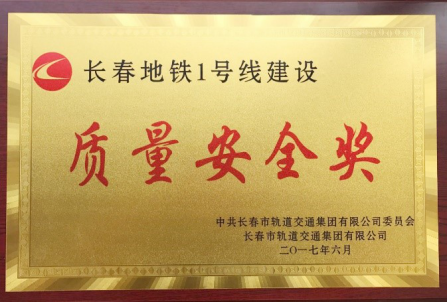 图1:同方荣获“长春地铁1号线建设质量奖”