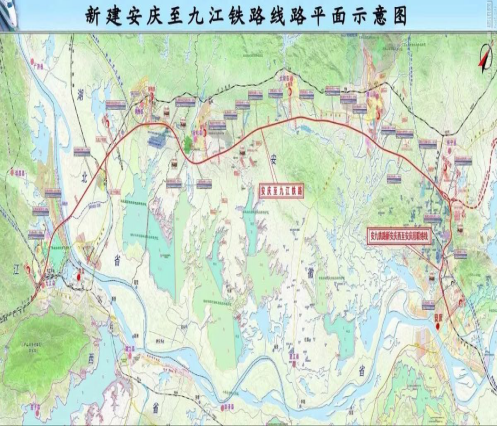 安九铁路全长约198公里,其中江西境内正线17.1公里。该线从九江铁路枢纽的庐山站引出,经黄冈市黄梅县,终抵安庆西站,北通合安、合蚌、京沪高铁,南通武九、昌九、昌赣、赣深等高铁。该线计划建设工期60个月,建成后将打通江西又一条北上进京的快速客运通道,成为“北京—合肥—安庆—南昌—深圳”南北高速铁路通道和“上海—南京—安庆—九江—武汉”沿江东西高速铁路通道的重要组成部分。建成通车后,南昌至合肥铁路旅行时间将由现在(经沪昆、合福高铁)最快4个多小时压缩至3.5小时左右,九江至合肥将由现在(经既有合九铁路)最快4.5小时压缩至3小时内。