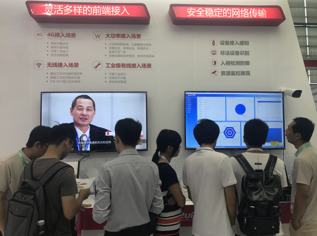 图:锐捷网络展台前吸引众多观众驻足交流