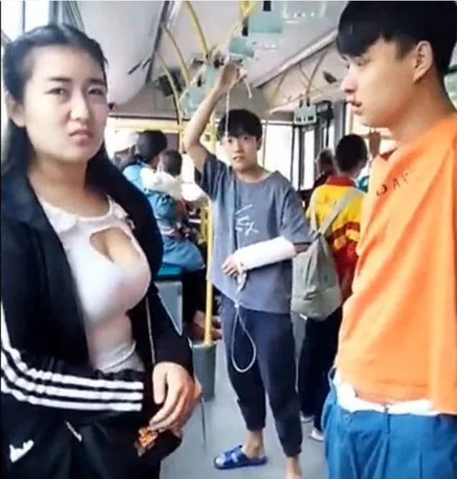 现在已进入秋季,在一些地方早晚时间是很冷的,所以大家会选择带个外套,天热的时候再拉开拉链,或者直接脱下来。在上海某路线公交车上,几个男子准备去玩,车上已没有了座位,只能站在后门的位置。这时上来一名漂亮女子,由于公交车上人比较多有点热,女子就把外套拉链拉了下来。没想到的是,却给对面的男子这么大 的刺激。