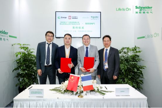 中国上海,2018年11月14日——近日,全球能效管理与自动化领域数字化转型的领导者施耐德电气与杭州电力设备制造有限公司萧山欣美成套电气制造分公司(以下简称“杭州欣美”)于中国国际进口博览会上,正式签署全新战略合作协议。立足于多年合作与信任,杭州欣美将基施耐德电气数字化低压成套设备,全面拓展高端市场业务。施耐德电气高级副总裁、能效楼宇中国区负责人谢佶隽与杭州电力设备制造有限公司萧山欣美成套电气制造分公司总经理许金彤代表双方签约。