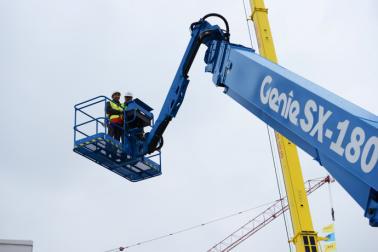 吉尼家族最高自行式直臂型高空作业平台——Genie? SX?-180自面世以来一直备受业内的关注,2013年,它以54.86米的最大平台高度打破所有行业记录,在实现最大高度的同时,Genie? SX?-180依然能保证比以往设计制造的同系列自行式直臂高空作业平台能更安全、更快速地完成更高的工作要求。长2.44米、宽0.91米的工作平台让Genie? SX?-180可以轻松承载340公斤的重量,而3.05米长,可60度旋转的短臂则可使作业人员和工具能更准确地到达工作地点。