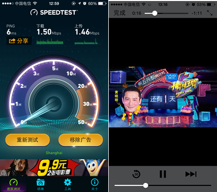 在最早开通地铁Wi-Fi的13号线 的实测场景中,测速软件Speedtest显示,平均下载速率为1.5Mbps,上传速率也有1.46Mbps,平均延时6毫秒左右,自站厅登录之后,在地铁运行全线没有出现断网现象,打开网页非常流畅,视频播放也没有遭遇卡顿问题。