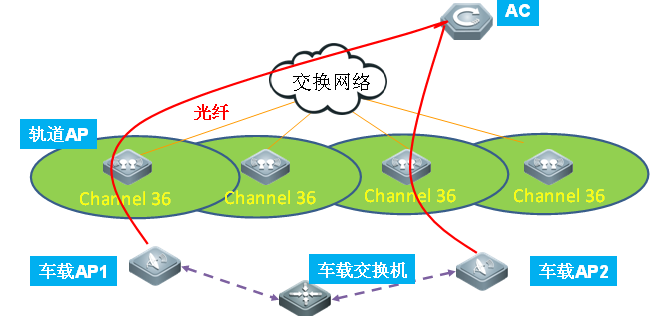 具体来讲,轨旁AP工作在相同频率,也发出相同的BSSID,所有的报文处理和交互,由AC统一协调。而对于车载AP来说,则可以把整网的轨旁AP看成一个“虚拟的大AP”。
